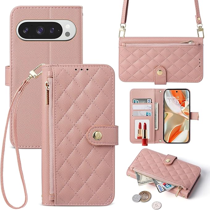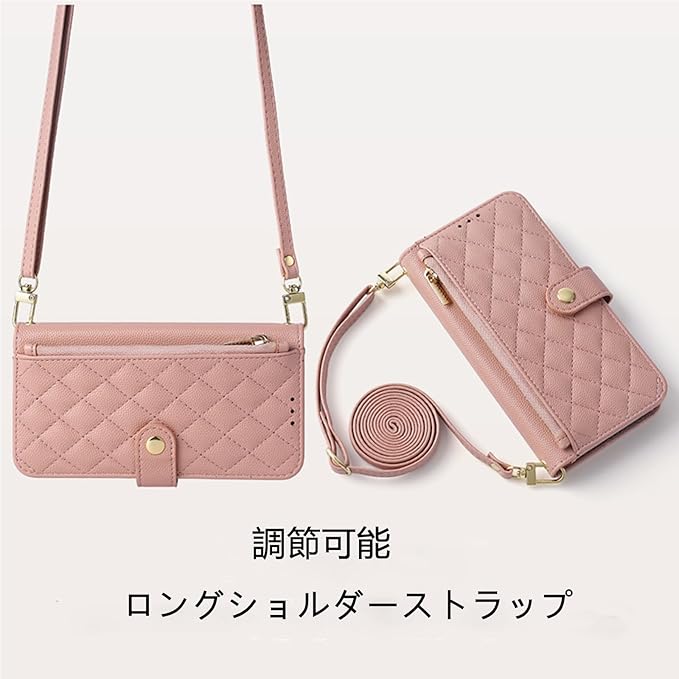 適用 Google pixel 10/10 pro/9/9 pro ケース 手帳型 ピクセル10 ケース ショルダー 2way googleピクセル10 スマホケース キルティング pixel10 スマホケース テチョウガタ ピクセル10カバー 小銭入れ カード収納 スタンド機能 鏡付き 耐衝撃保護 全面保護 TPU 高級PUレザー 携帯ケース (ローズパウダー)