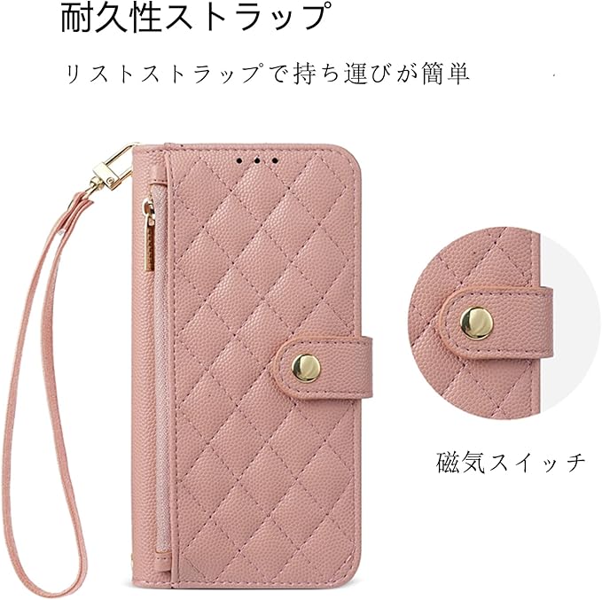 【外観と配色】:Google pixel 9 pro ケース には、リストストラップと斜めのショルダーストラップが付属しています。スマホをしっかりホールドでき、落としにくい。また、ショルダーストラップを斜め掛けにすることで、外出時に両手が空くので便利です。必要に応じて適切な長さを選ぶことができます。携帯ケースの表面には、手触りも質感も心のこもった刺繍加工が施されています。高級感のあるゴールドのメタルジッパーが、一味違ったファッションを演出します。また、豊富なカラーバリエーションで様々な選択肢に対応できます。