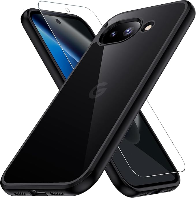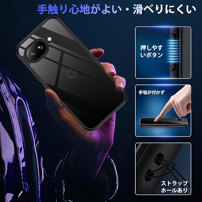 gogorelax for Google pixel 10a 用 ケース ブラック 米軍MIL規格 耐衝撃 ガラスフィルム付き グーグルピクセル10a 用 ケース 耐黄変 ピクセル10a 用 カバー googleピクセル10a 用 スマホカバー ワイヤレス充電対応 透明 ストラップホール付き