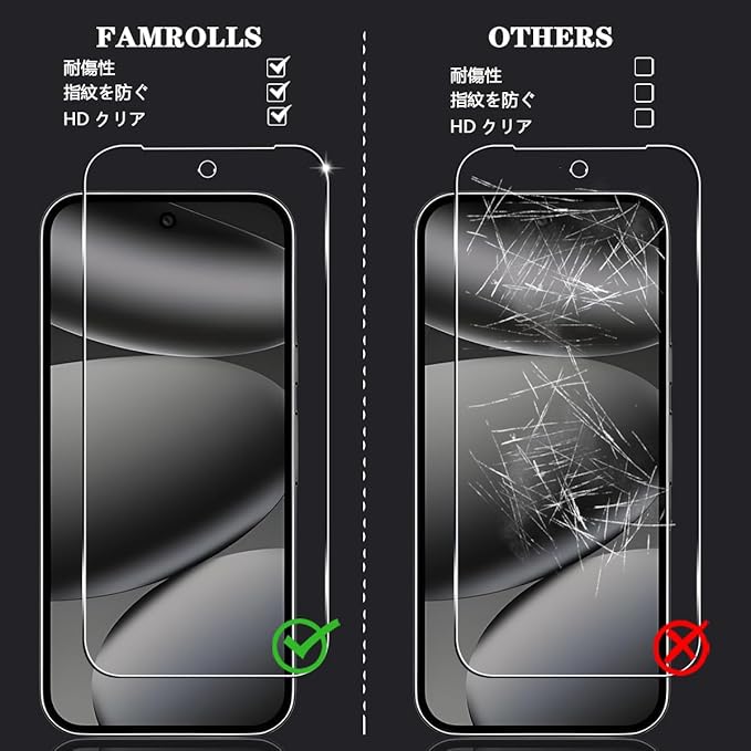 【✔対応機種】 Google Pixel 10 Pro 専用。素材に日本製の旭硝子を採用。【四枚セット】 2枚 用 Pixel 10 Pro 強化ガラスフィルム+ 2枚カメラ保護フィルム。【✔FAMROLLS正規品】スマホの周辺アクセサリーを長年手掛けるFAMROLLSメーカーの人気スマホガラスフィルムです。安心してご注文ください。