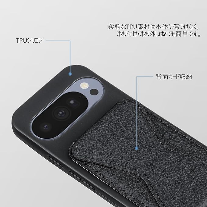 Cafma 対応 GOOGLE PIXEL 10 ケース 背面 カードケース グーグル ピクセル10 pro スマホスタンド カード入れ グリップで片手操作が便利 落下防止 ICカード収納 安定のスタンド機能 スマホケース 携帯 カバー 薄い 携帯 ケース(ブラック)グーグル PIXEL10 Pro/Pixel10 Black