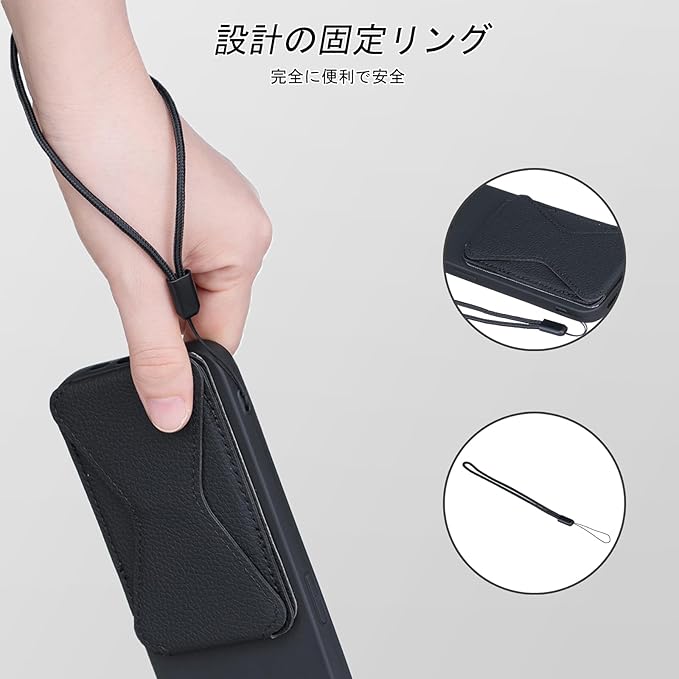【財布型&収納】粘着型 貼り付け スマホ背面スタンド ステルス式カードスロットは1枚のカードを安全に保管することができます(クレジットカード/地下鉄カード/身分証明書/名刺)