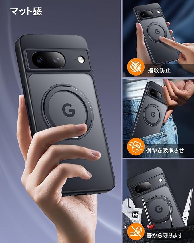 【MagSafe対応】Google Pixel 7A ケースの全身マット感のマットデザイ+バックパネル部内蔵金属ニッケルチップを採用しています。マット感のマットなデザインで、スマホに装着した瞬間、高級感と神秘感を隠せません。また、背板部付属ケースの場合も高い吸着力に対応し、強固で安定した充電能力を実現します。