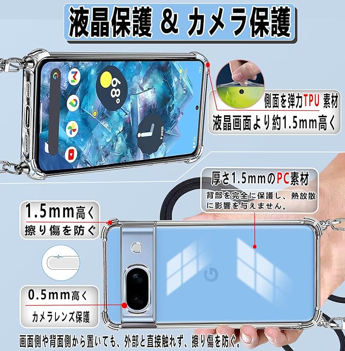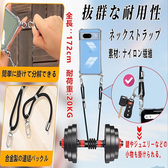 OJBSEN Google Pixel 8a ケース グーグルピクセル8a カバー [ストラップ2枚付き] 調節可能な ショルダー 肩がけ 首掛け 紐付き ストラップホール付き 薄型 透明 PC+軽量 シリコン TPUバンパー [耐衝撃 ワイヤレス充電 傷防止 全面保護 米軍MIL規格 防指紋 カメラ保護] スマホケースPixel 8a(クリア)