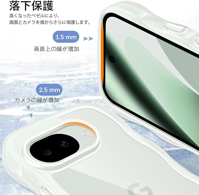 【高耐衝撃性】カメラレンズの周りに段差をつけて擦り傷を防ぎます、平らな場所においても、液晶画面とカメラレンズに直接触れることがなく、ケース四隅のエアクッションデザインにより、ケースの四角を強化し、本体が落ちる場合に伝わる衝撃を吸収し、落下時の衝撃を最小限に抑えます、を全方位からしっかり守れます。