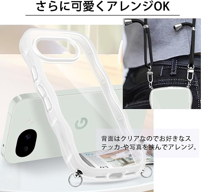 Meiping For Google Pixel 10A 用 ケース クリア ショルダー ストラップ付き カバー 透明 耐衝撃 ピクセル 10A スマホケース 肩掛け 斜めかけ 紐付き 縄掛けケース 長さ調整可能 取り外し可能 (クリア)