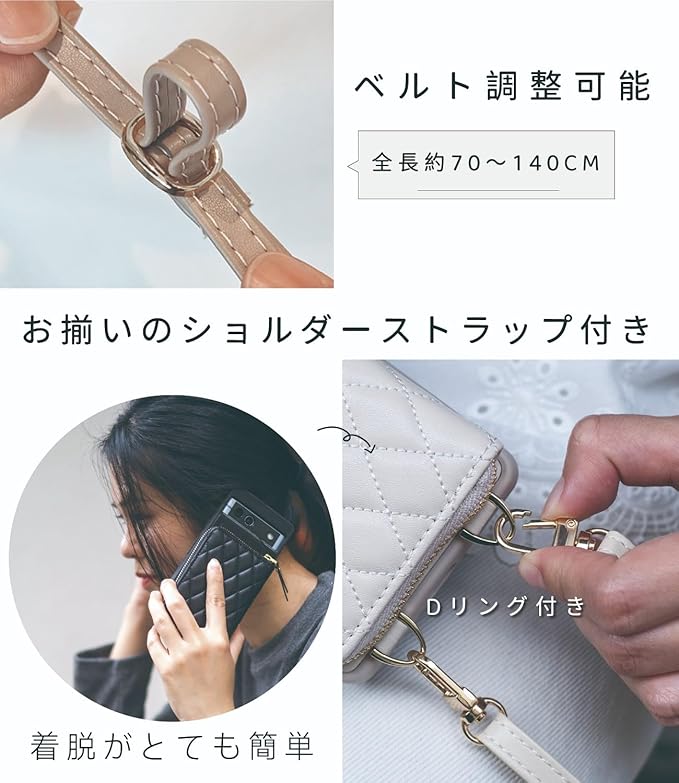 【グーグルピクセル ショルダー ケース ストラップ付き】 ショルダーベルト全長は約70~140cmまで調節可能。外出先で両手が空かない時、ケースを肩や首にかけて使用できる。様々なのシーンやスタイルに合わせてどこにでも持ち歩ける。特にポケットがないお洋服には最適!使い勝手が抜群。 耐久性が高いDリングを採用。取付も取り外しも簡単。ストラップが不要な時には、携帯ケースのリングから簡単に取り外すことができる。他のお気に入りのストラップに交換することも可能。