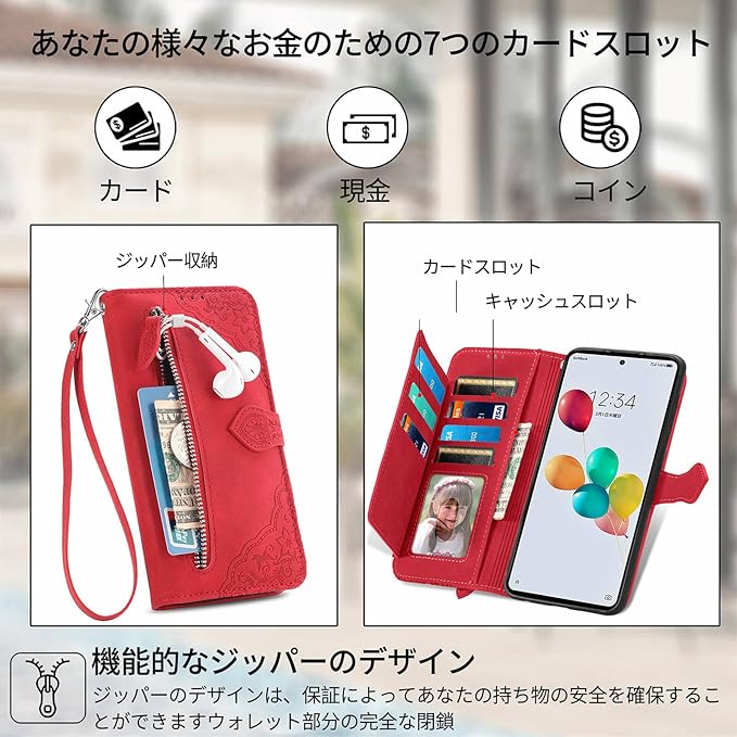 横置きスタンド機能が付いて、好きな角度で動画鑑賞や読書などを楽しめます、財布型ケースとして、名刺やカードなどを入れるポケットがつき、日常生活に便利です。