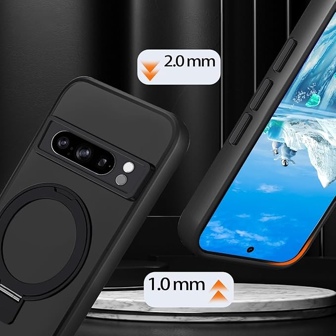 Google Pixel 7 pro ケース MagSafe対応 グーグルピクセル7プロ ケース マグネット搭載 スタンド機能【横縦両立/角度自由調整】 カバー 純正 薄型 マット感 指紋防止 耐衝撃 落下防止 車載ホルダー対応 (ブラック)