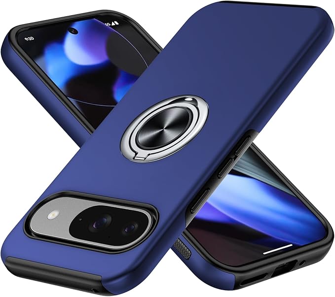 Google Pixel 9 Pro 用ケース/Google Pixel 9 用ケース リング付き 耐衝撃 tpu フルプロテクトデザイン スマホケース 軽量 薄型 スタンド機能 全面保護 擦り傷防止 落下防止 米軍MIL規格 車載ホルダー対応 取り出し易い グーグル ピクセル 9pro/9 用ケース オシャレ 人気 携帯カバー 青 DA08-50