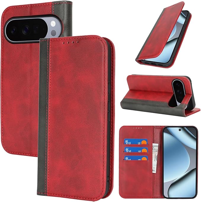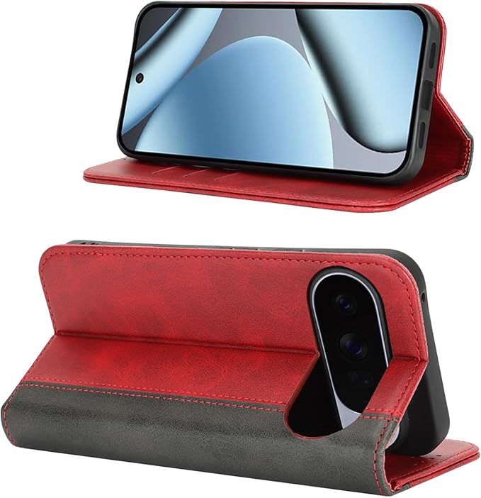 Cavor Google Pixel 10 / 10 Pro手帳型 ケース Pixel 10 ケース 手帳型 Pixel 10 Pro 携帯 カバー Pixel 10 Pro ケースカード収納 2色カバー 柔らかい材質 耐久性 内蔵マグネット携帯カバー カカード入れ スタンド機能 落ち着いた色 軽量 強磁性[選択可能な4色]-レッド+ブラック