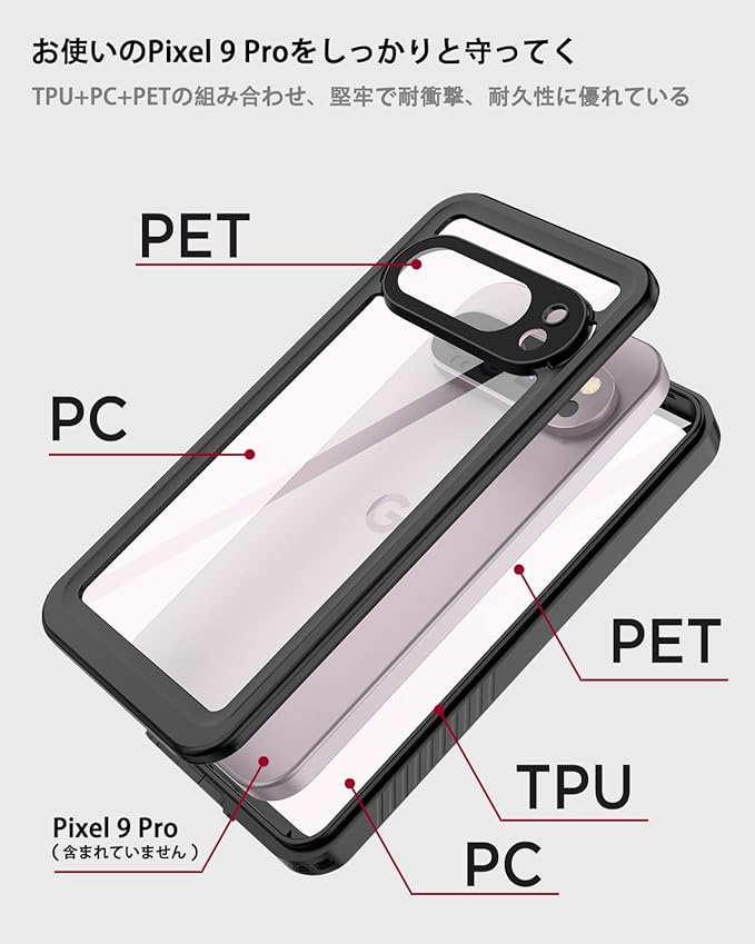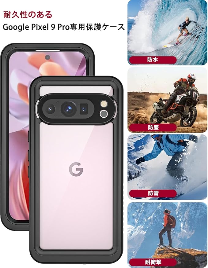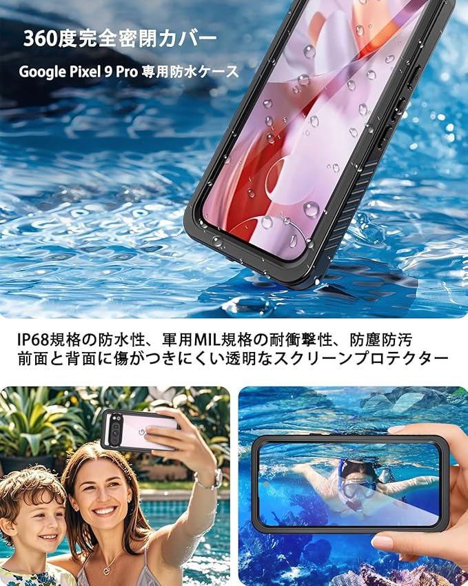 【対応機種】For Google Pixel 9 Pro(グーグル ピクセル 9 プロ)専用防水ケースです。ご注意:Pixel 9、Pixel 9 Pro XL、Pixel 9 Pro Foldと交換性はありません。お手元の機種をご確認の上、ご注文いただきますようお願いします。取り扱いやすくGoogle Pixel 9 Proにピッタリフィットできる見栄えも保護力も両立させた防水ケースです。水、埃、雪、砂、汚れなどからグーグル ピクセル 9 プロを守るので、アウトドア活動、温泉、海水浴場、釣りなどに対応できます。特に仕事柄で高所の作業、水によく接触する作業などおすすめです。