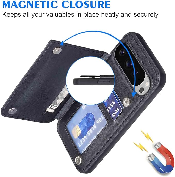 【Geshh】Pixel 10/10 Pro レザーケース(ブラック)耐衝撃 財布型カバー カード収納 横置きスタンド機能 開閉式 ストラップ付き 薄型レザーケース 対応 グーグル ピクセル10 pixel 10/10 pro BLACK