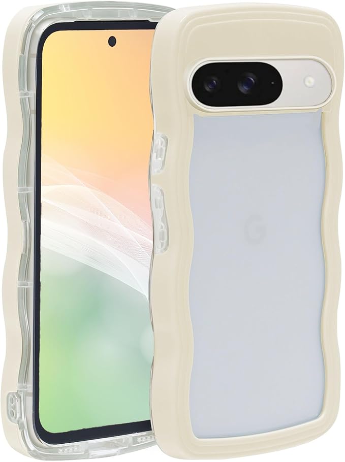 Google Pixel用 9A ケース ウェーブ ピクセル 9a うねうね 人気 韓国 耐衝撃 超軽量 薄型 おしゃれ なみなみ パステル 可愛い 透明 オタ活 推し活 (クリーム, pixel9a対応)