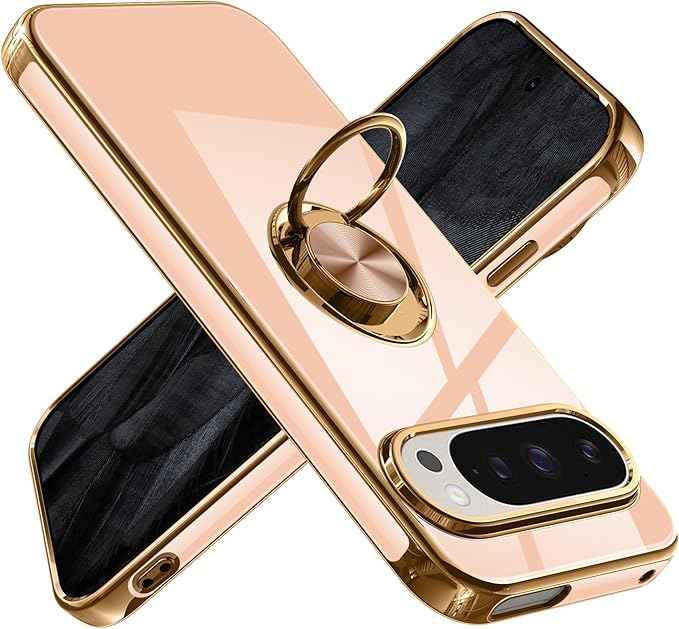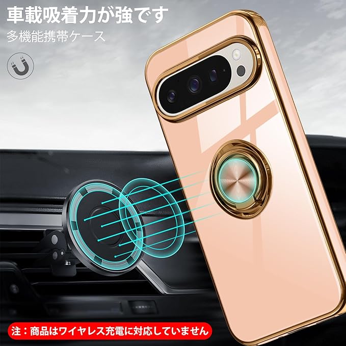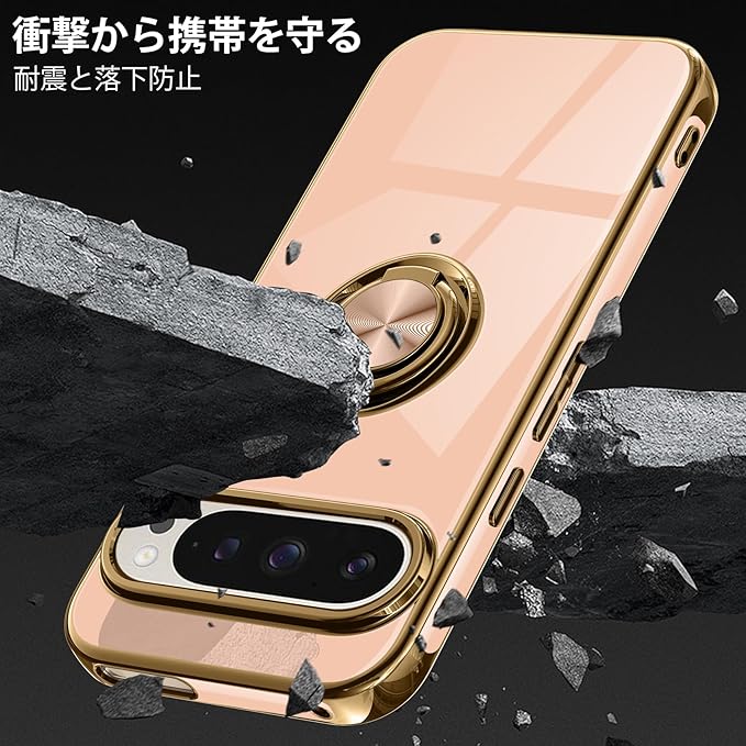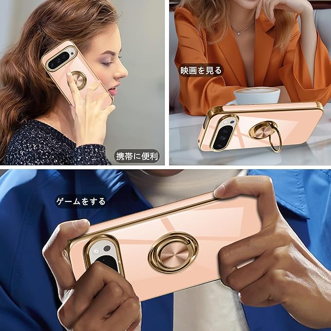 Google Pixel 9 Pro 用ケース/Google Pixel 9 用ケース リング 耐衝撃 レンズ保護 軽量 グーグル ピクセル 9/9pro 用ケース メッキ加工 ソフトケース スタンド機能 車載ホルダー対応 サラサラ触り心地 ピンク MZ85-55