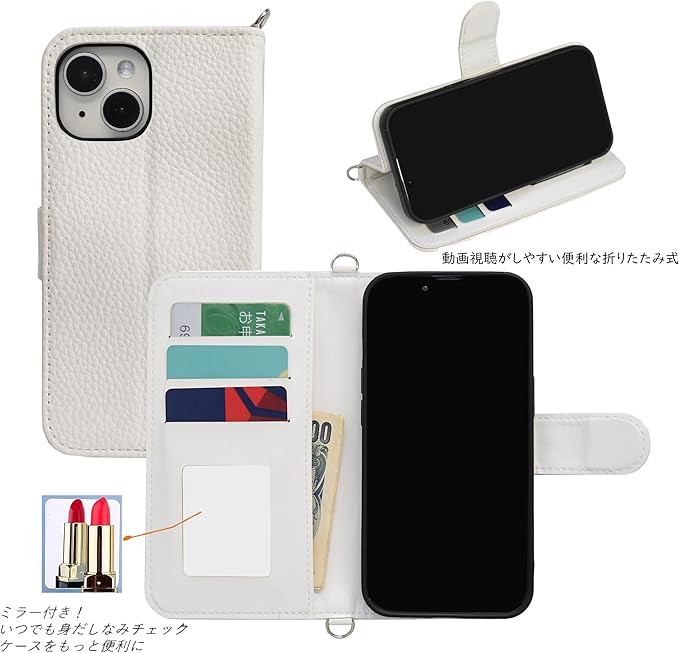 【ミラー付き】手帳の裏側には、女性がメイクや口紅を塗るための小さな鏡が付いています!メイクや身だしなみのチェックに最適です。(ミラーには保護フィルムが貼ってあります。保護フィルムを剥がしてからご使用ください)