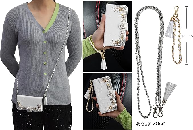 【便利なストラップ付き】ショルダーストラップはタッセル付きで、斜め掛け、肩掛けが可能。ショルダーストラップはデコラティブなだけでなく、スマートフォン使用時の落下防止にもなります。短いハンドストラップも付きで、デイリー、お出かけ、ショッピングに適しています。