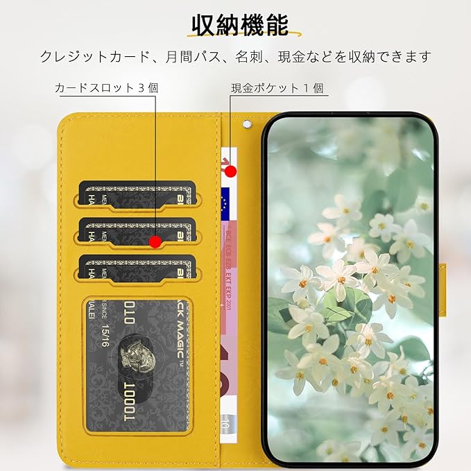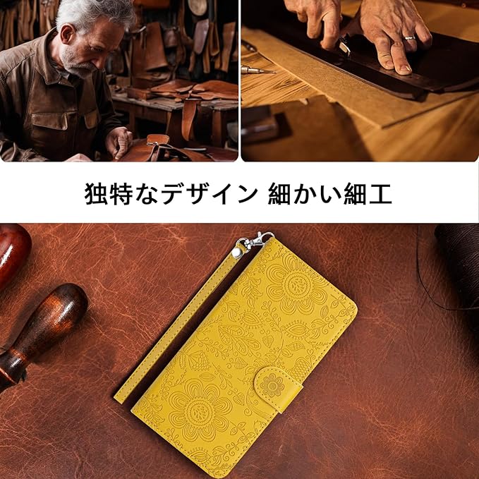 Google Pixel 9 Pro ケース 手帳型 スタンド機能 Pixel9 ケース Pixel9プロ スマホケース 手帳型 グーグルピクセル9ケース 手帳型 ぐーくるぴくせる9 携帯カバー 財布型 携帯ケースgoogleピクセル9 ピクセル9 ケース 手帳型 カード収納 Googleピクセル9 カバー 高级PUレザー ストラップ付 スマホケース 花柄 軽量 薄型 -黄色