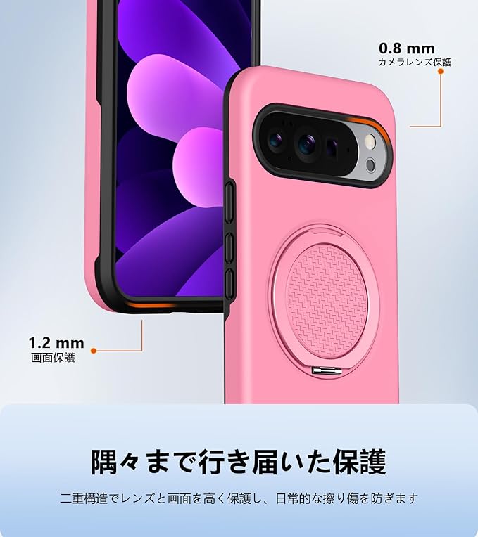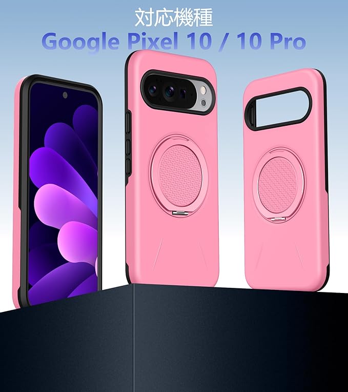 と互換性のある Google Pixel 10用の ケース Pixel 10 Pro 用の ケース Magnetic対応 スタンド付き リング付き 耐衝撃 縦横両可能 360 自由回転 TPU+PC 軽量 滑り止め 落下保護 スタンド機能 車載ホルダー対応 ピクセル 10/ 10 プロ 携帯カバー ピンク R-KP-GP10P-05