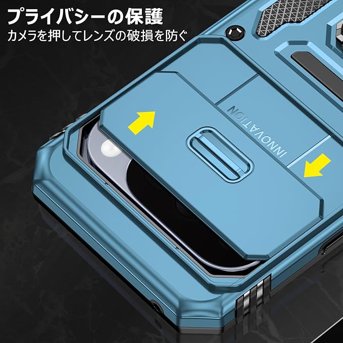 PNEWQNE 対応Google Pixel 10 Pro XL 用のケース リング付き 衝撃吸収 耐衝撃 スタンド機能 米軍MIL規格 グーグル ピクセル10 pro xl 用のケース 全面保護 360 回転 滑り落ちにくい 人気 おしゃれ 携帯カバー ライトブルー WY100-35