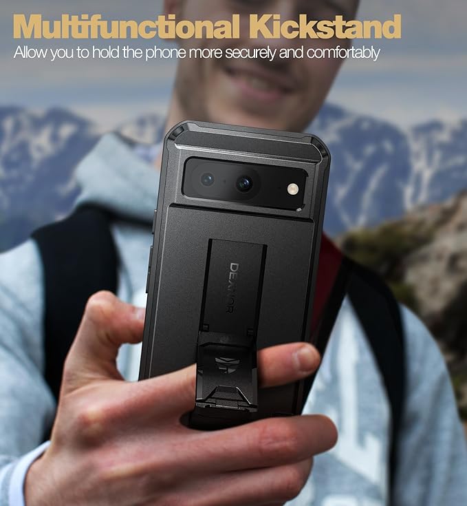 Dexnor Google Pixel 8用 全面保護ケース【二重フロントフレーム&キックスタンド】バンパーショック技術採用 耐落下 耐衝撃 頑丈バンパーケース(ブラック)