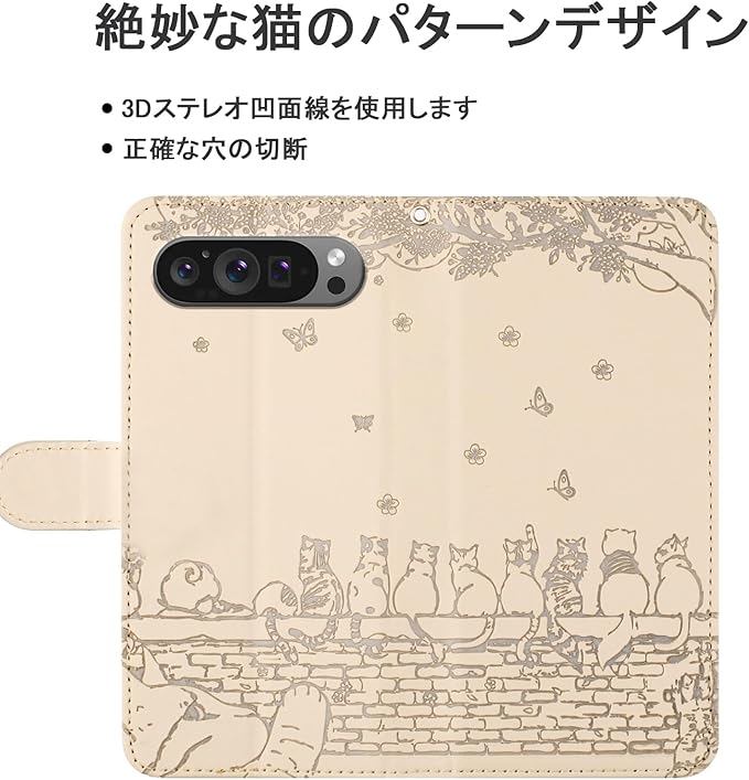 グーグルピクセル9プロxl ケース google pixel 9 pro xl ケース 手帳型 グーグルピクセル 9 pro xl スマホケース 手帳型 ピクセル9pro xl ケース ソフトTPUインナーシェル 精密カットアウト マルチカード収納 桜柄マグネット開閉式 キャッシュポケット 耐衝撃保護 Pixel 9 Pro XL カバー 手帳型[ベージュ]