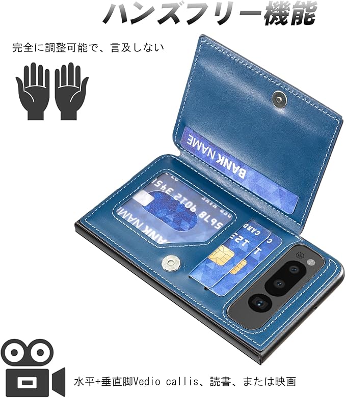 【 Antimam 】背面カード 手帳型ケース 対応 Google Pixel fold スマホバックカバー ( ネイビーブルー )手作り お洒落シンプル 軽量 耐久性 カード収納 スタンド機能付き 財布型 落下防止 グーグル ピクセル フォールド スマホ ケースPixel fold 5g BLUE