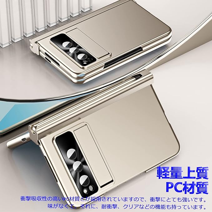 Miimall Google Pixel Fold用 全面保護ケース グーグル ピクセル Fold 【ケース+フイルム+スタンド機能+ペン付き+折り畳む部分保護】ペン収納機能 高級 スタンド マグネチック効能 Google Pixel Fold カバー 全面保護ケース Pixel Foldカバー フイルム(ファントムゴールド)