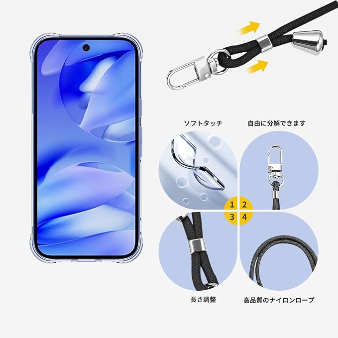 Google Pixel 10 A 用 ケース カバー 軽量 TPU ソフト クリア 肩掛け 首かけ 調節可能 紐付き 取り外し可能 【NOUKAJU】For Google Pixel 10 A スマホケース ストラップ付き 長さ調整可能 ショルダーストラップ なワイヤレス充電邪魔ない
