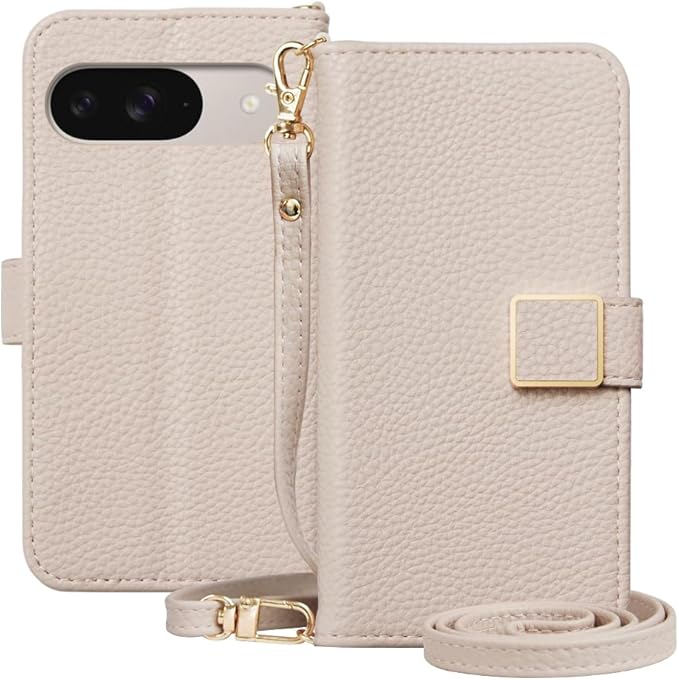 For Google Pixel 9/Pixel 9 Pro ケース 手帳型 おしゃれ ショルダー グーグル ピクセル 9 手帳型 ケース かわいい ストラップ 人気 シンプル ピクセル9pro 携帯ケース 女性 財布型 軽量 薄型 耐衝撃 レディース スマホケース Pixel9 カバー カード収納 スタンド機能 横置 マグネット式 高級PU 肌感レザー 贈り物 アプリコット