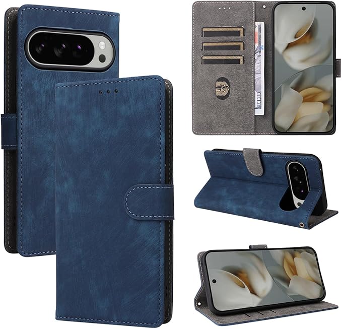 For Google Pixel 10 Pro XL ケース 手帳型 スマホケース 【SHANCHI】(掛绳 x 1) 磁気開閉 耐衝撃 カード収納機能 レンズ保護 合成皮革 + TPUケース 指紋防止 (ブルー)