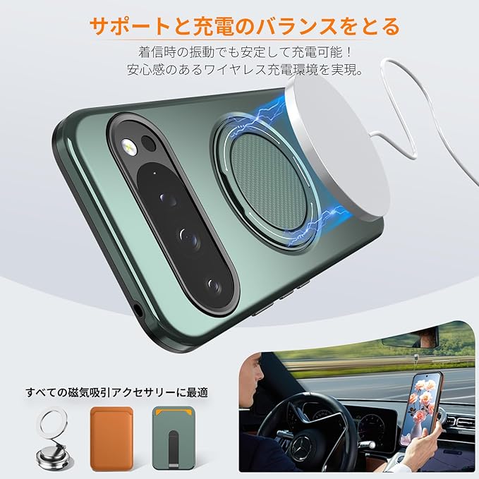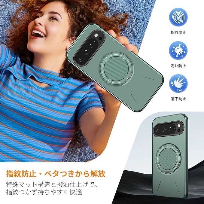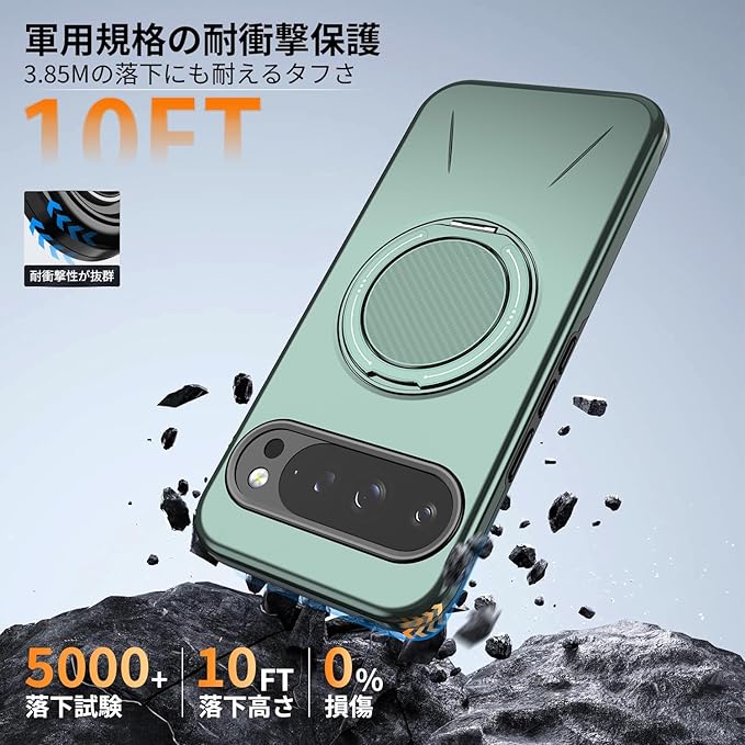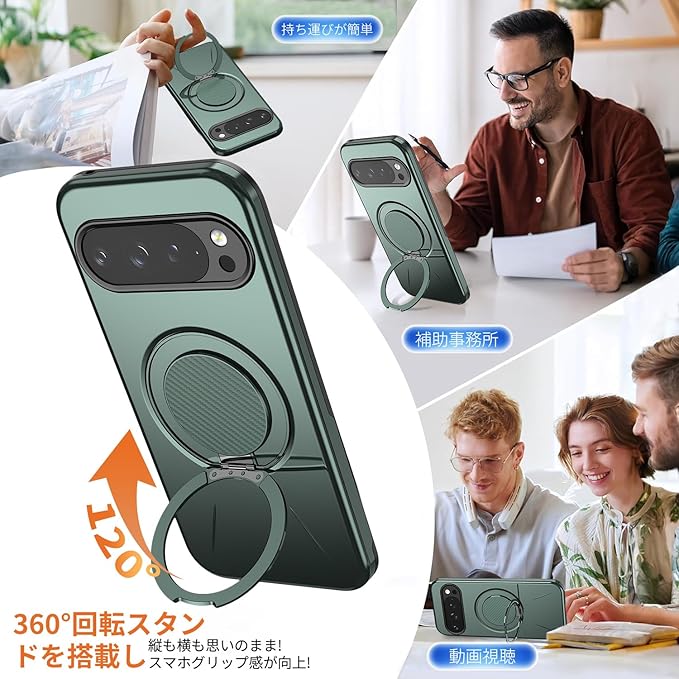 対応 Google Pixel 10 Pro XL 用の ケース magsafe対応 360 回転スタンド 耐衝撃 米軍MIL規格 強磁力 リング付き ワイヤレス充電対応 10 Pro XL 用 カバー 指紋防止 レンズ保護 緑 525-pix 10pxl-04