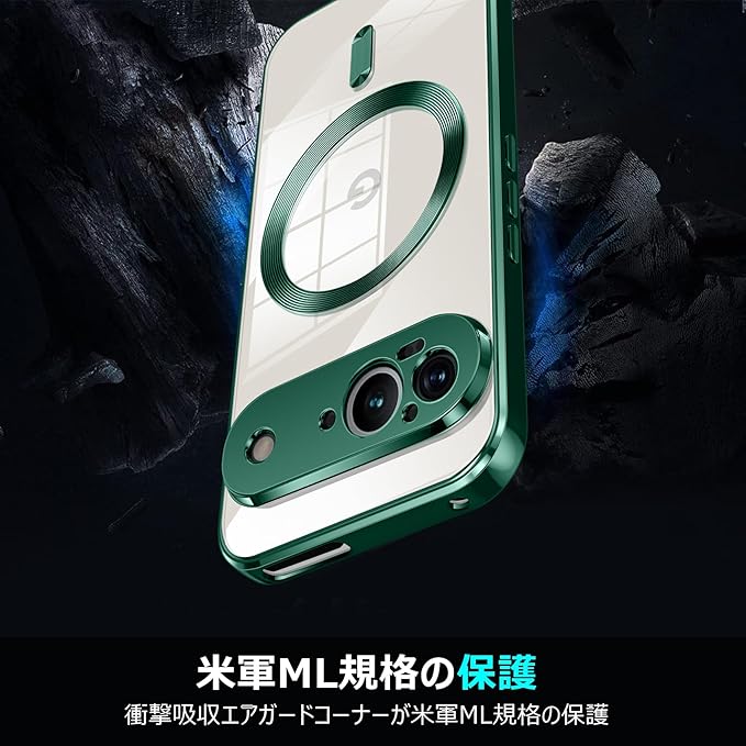 Google Pixel 9 用ケース Magnetic対応 ワイヤレス充電 軽薄型 TPU ソフト グーグル ピクセル 9 用スマホケース マグネット搭載 耐衝撃 米軍MIL規格取得 黄変防止 耐久性 ストラップ穴付き おしゃれ 携帯カバー 緑 D77-105