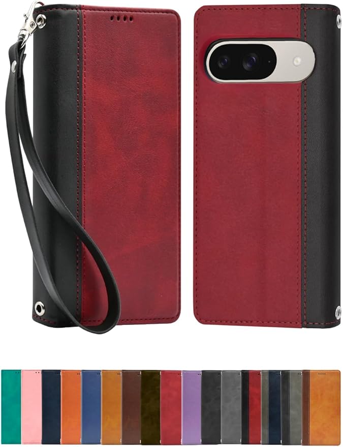 シズカウィル Google Pixel9 / Pixel9 Pro ケース カバー 手帳型 本革調 レザーケース ボルドーレッド ブラック 1個入り