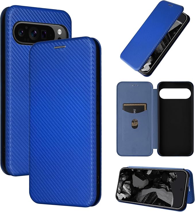 Pelanty for Pixel 9 ケース 手帳型 炭素繊維調 for Google Pixel9 Pro 携帯カバー 背面 軽量 薄型 財布型 カード収納 グーグル ピクセル9/ 9プロ スマホケース マグネット ストラップ付き 耐衝撃 全面保護-ブルー