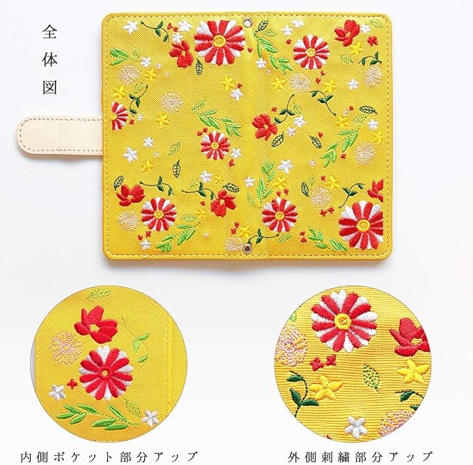 Google Pixel 9 / 9pro 用 手帳型 ケース カバー pixel9 pixel9pro ピクセル スマホケース 手帳型ケース ちょいヌメ花刺繍 イエロー