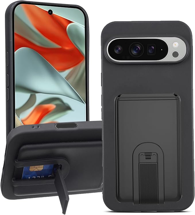 【 Moilyo 】Google Pixel 9/Pixel 9 Pro 対応 ケース 背面収納 耐衝撃 薄型 軽量 TPUスマホケース 折畳式 スタンド機能 携帯ケース ストラップホール付きグーグル ピクセル9/ピクセル9 Pro pixel9/9pro カード収納(ブラック)
