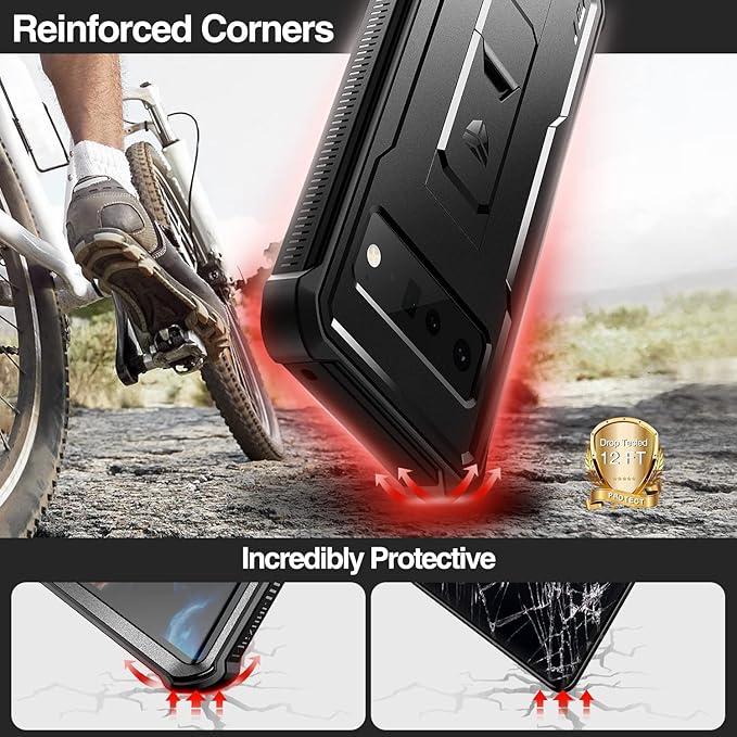 【360 全面防護】 前面・背面を完全にカバーするだけでなく、補強されたコーナーとカメラ・画面周りの盛り上がり加工により、Google Pixel 6 Pro 5Gを落下・割れ・擦り傷からさらに保護します。