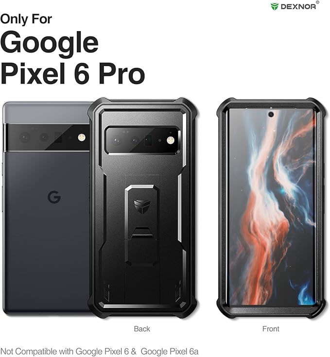 Dexnor Google Pixel 6 Pro 5G用 ケース [内蔵スクリーンプロテクター&キックスタンド] 軍用規格 耐衝撃 強化防護カバー(ブラック)