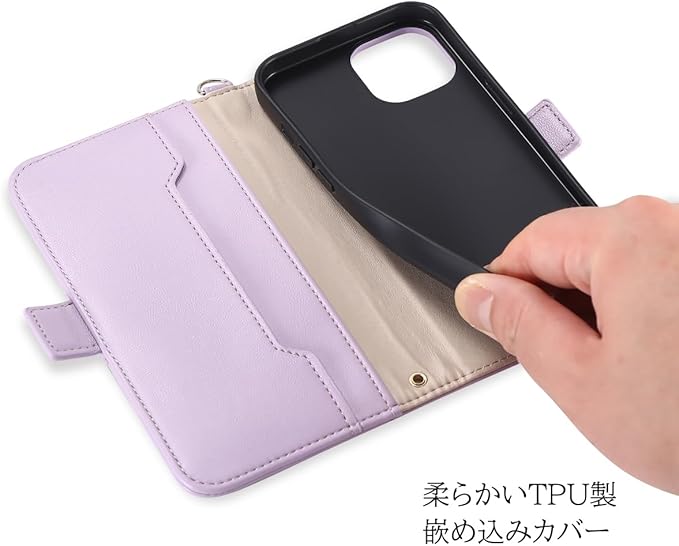 実用性に二つの大きいフリーカードポケットを付きて、カードポケットが上下に出し入れするタイプじゃないのでスマホを逆さにしてもポケットに入れたものが落ちない便利なデザイン。ICカードや免許証、紙幣などよく使うものを安心に入れて軽やかで出掛けすることも可能。
