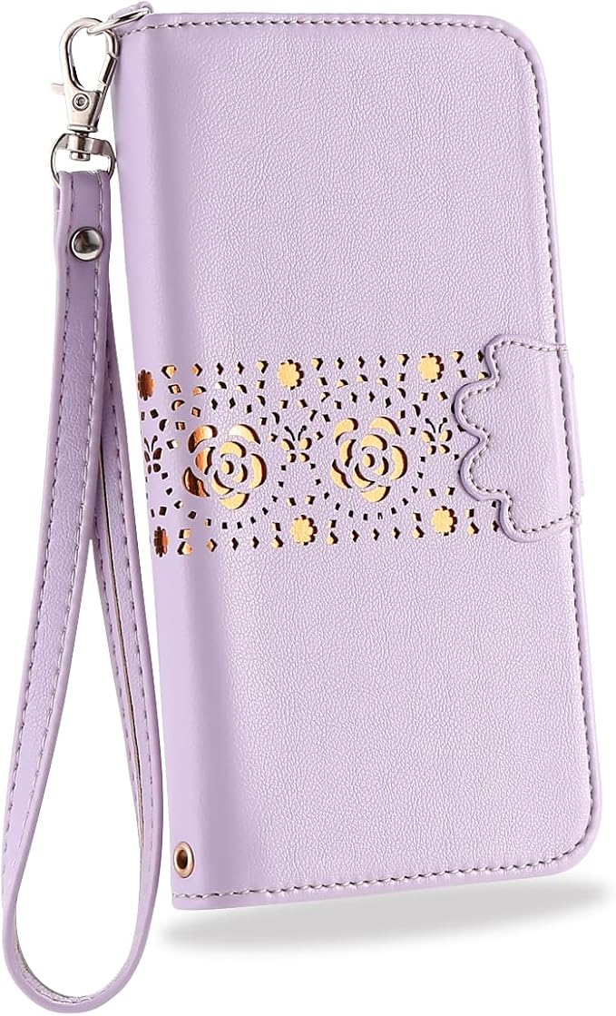 Google Pixel 9 手帳型ケース 可愛い 花柄 女性 透かし彫りの花と胡蝶柄 Google Pixel 9/ 9Pro対応 カード収納付き 財布型ケース グーグルピクセル9 スマホカバー 手帳型 可愛い 安い おしゃれ マグネット式 オリジナルなデザイン ストラップ付き 全面保護 女性に向け パープルと花