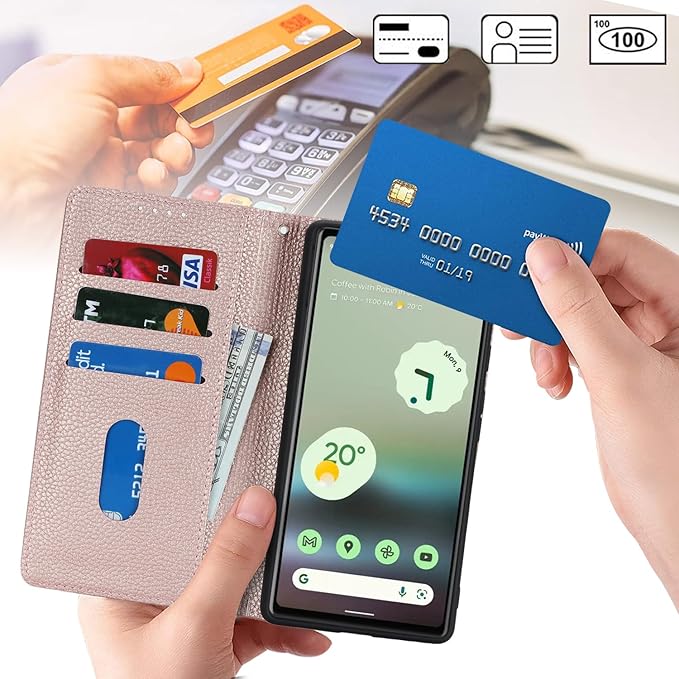 【Hamany】 対応 pixel 6a ケース ショルダー グーグルピクセル6a ケース 手帳型 スマホストラップ カード収納 財布型 スタンド機能 ピクセル6aスマホケース マグネット式 女性 肩がけ 首掛け 斜め掛け ショルダーバッグ 携帯カバー -ローズゴールド