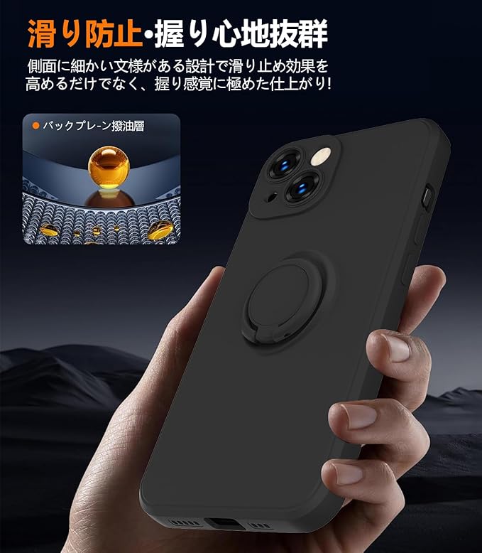 【リング付き&スタンド機能】:リングは360度回転可能で、180度の角度調節も可能です。ケースを横置きにするとスタンド機能になり、持たずに動画鑑賞などを楽しむことができます。指をリングに通して一本指で持つことで、片手で携帯電話を操作でき、落下を防止します