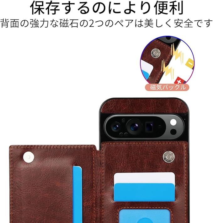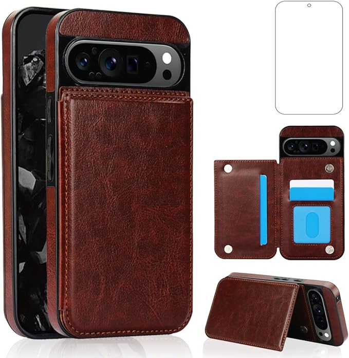 NKECXKJ Google Pixel 9 / Pixel 9 Pro 用ケース, PUレザー 財布型カードホルター付き収納 スマホケース スタンド機能 耐衝撃 グーグルぴくせる グーグル ぐーく ピクセル9 ピクセル9pro Pixel9プロ 対応 携帯カバー Case レディース メンズ 6.3 インチ(ブラウン)