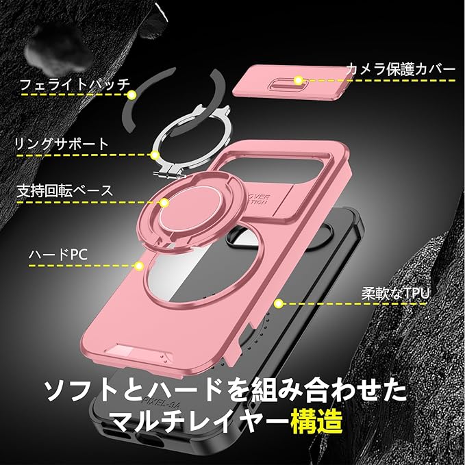 【磁吸機能付き】:リングは鉄片の材質です、磁性アクセサリー(車載スタンド・壁掛け等)と簡単吸着,生活をより便利にする;例えば,磁気吸引車載スタンドに簡単に吸着でき、運転中にナビゲーション情報を見やすくすることができます(注意:①今回の購入はケースのみで、車載などはありません;②本製品は無線充電に対応していません)