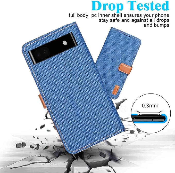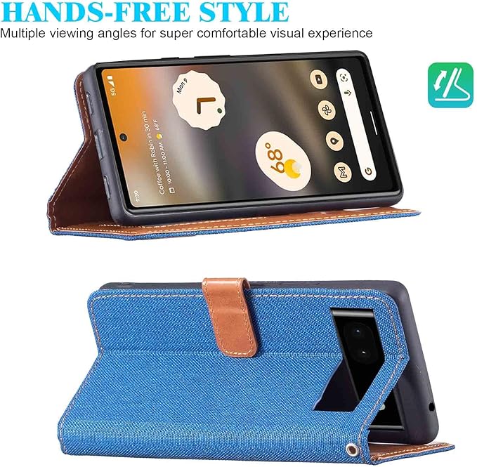 【Anrek】互換性 Google Pixel 6A 対応 Google デニム材料 手帳ケース (ブルー) カバー 手帳型 カード収納 サイドマグネット スタンド機能付き 財布型 ケース グーグル ピクセル6a NAVY