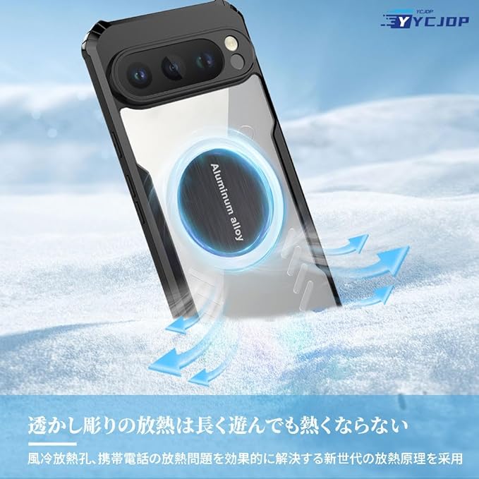 保護カバー for Google Pixel 9 Pro XL ケース ゲーム冷却/サポートカー磁気吸引/強化されたコーナー グラフェン冷却保護カバー 高耐久性 耐衝撃 TPU+アクリル質感 黄ばみにくい アジャスタブル・ランヤード付(ブラック)
