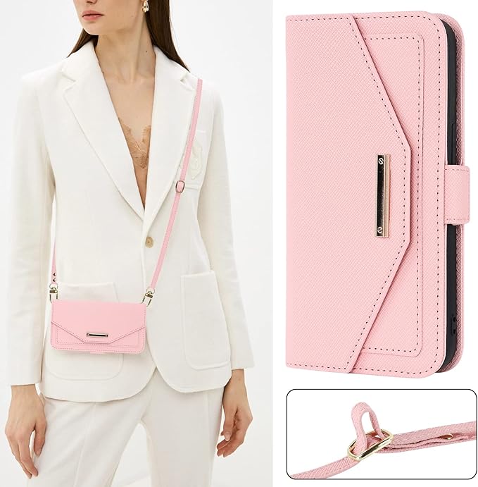 Eastwave for Google Pixel 7 Pro ケース for Pixel7 Pro 縄掛けカバー 手帳型 手帳 for pixel 7pro case チェック柄 鏡 ミラー付き 長ストラップ付き 肩掛け 革レザー 柔らかいTPU 多機能 財布型 カード収納 小銭入 れ スタンド機能 全面保護 5色ピンク