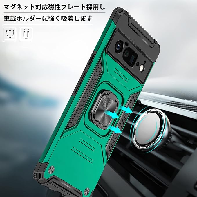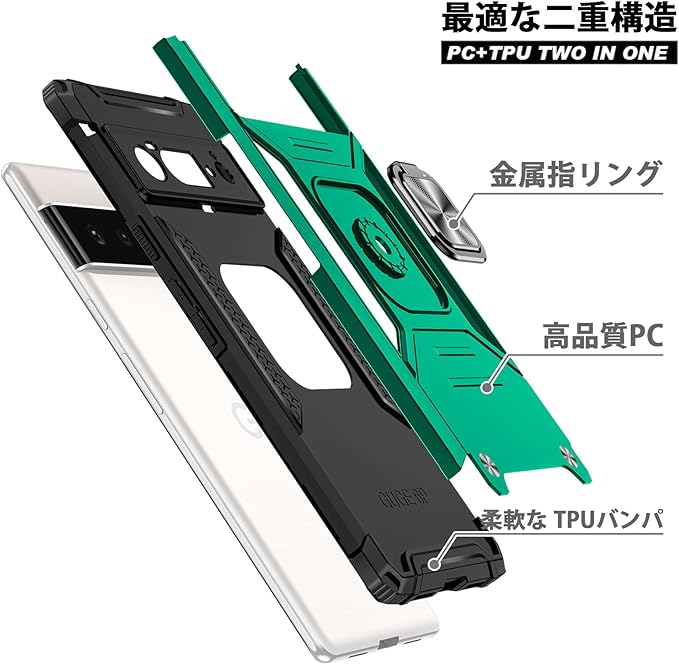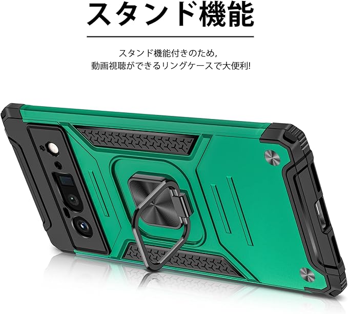 対応 Google Pixel 6 pro 用の ケース リング 耐衝撃 衝撃吸収 携帯カバー 米軍MIL規格取得 TPU+PC 指紋防止 車載ホルダー対応 スタンド機能 防塵 薄型 軽量 落下防止 擦り傷防止 レンズ保護 绿86-APix6p-05