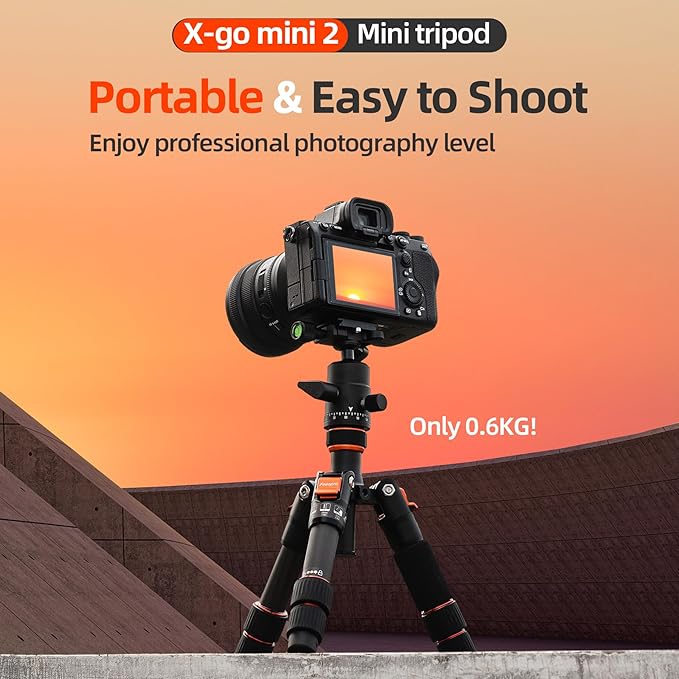 Fotopro ミニ三脚カーボンファイバー三脚ボールヘッドクイックリリースプレート付きデジタル一眼レフカメラ用軽量コンパクトミニ小型三脚デスクトップ三脚最大荷重8kg X-GO Mini2 ブラック